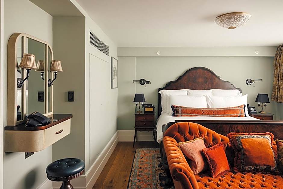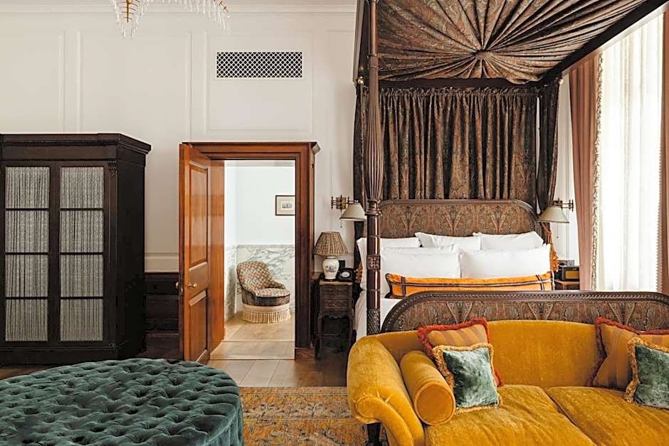 This rate does not include access to any Ned’s Club areas (Upstairs, Downstairs Spa & Gym). Combining 1920s glamor with modern comforts, the 50 square-yard Heritage Suites feature a super king-size alongside plush mohair ottomans and a palm tree crystal chandelier, as well as period details such as French-polished walnut paneling, an original 1920s marble fireplace and large dome windows – a signature design by architect Sir Edwin 'Ned' Lutyens. There’s also a desk and dining space with a well-stocked cocktail cabinet. An Italian marble bathroom houses a roll top bathtub and walk-in rainforest shower, with a range of full-size Cowshed products. This room can accommodate an extra bed with the additional charge of GBP 60 per night.